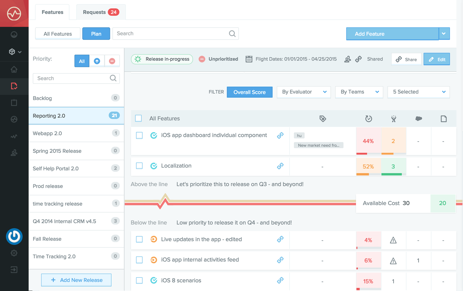 There are many tools on the market now that help with tasks such as collating the features and requests into one place, assigning value to them, mapping them out over time, splitting them into version – all in a friendly fashion that even the most old fashioned non-tech in your team will be happy using.