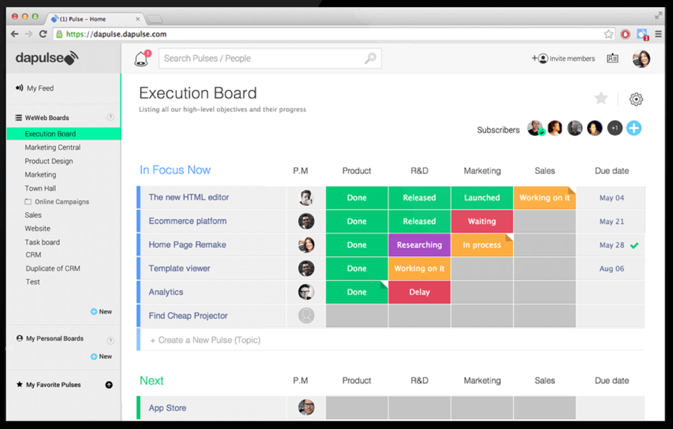 Comes with a great status board which quickly shows all the major mile stones and if they’re on track or behind.